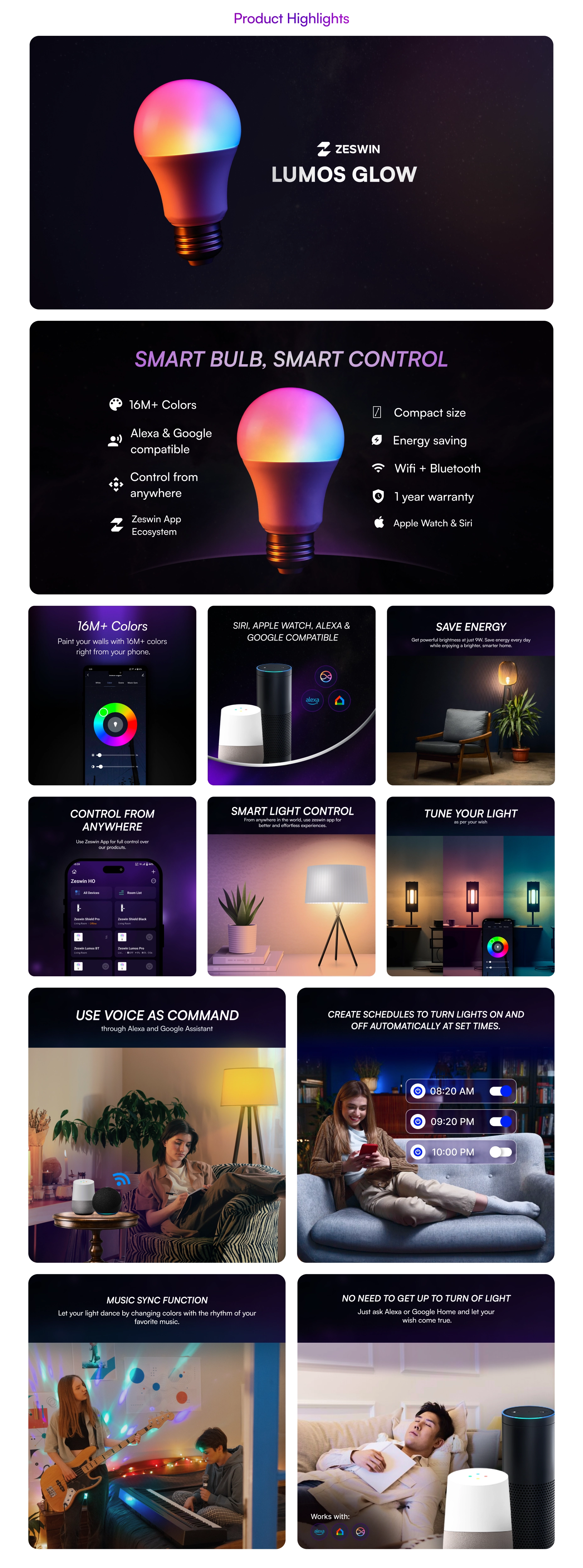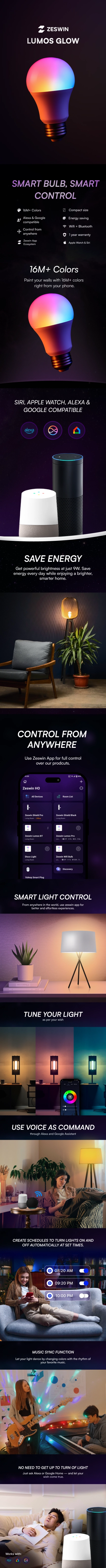 Lumos Glow Smart Bulb 12.5W Wi-Fi Smart LED Bulb with Music Sync for Amazon Alexa & Google Assistant