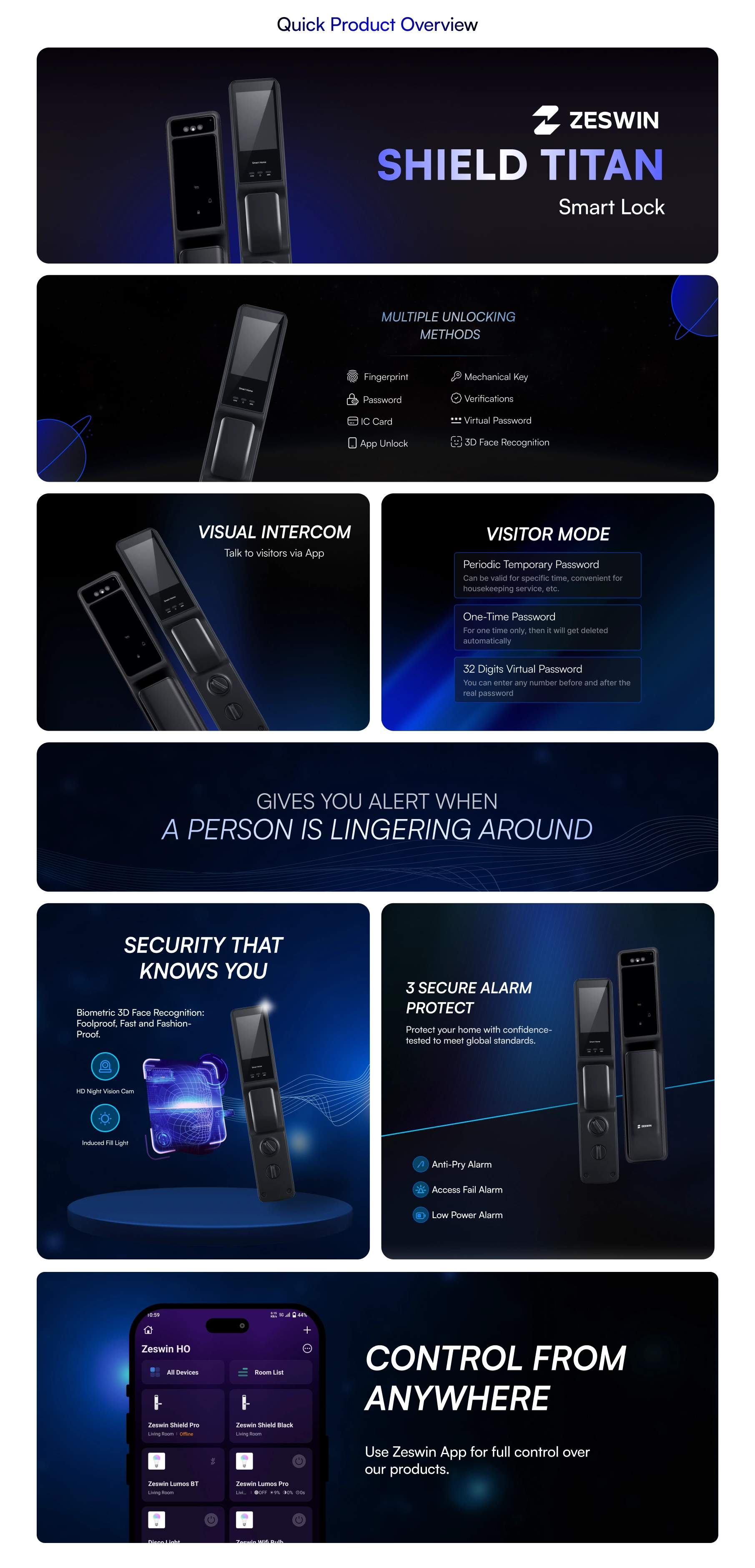 Wi-Fi App, Face ID, Fingerprint, Password, IC Card, OTP, Mechanical Key, Video Call Unlock