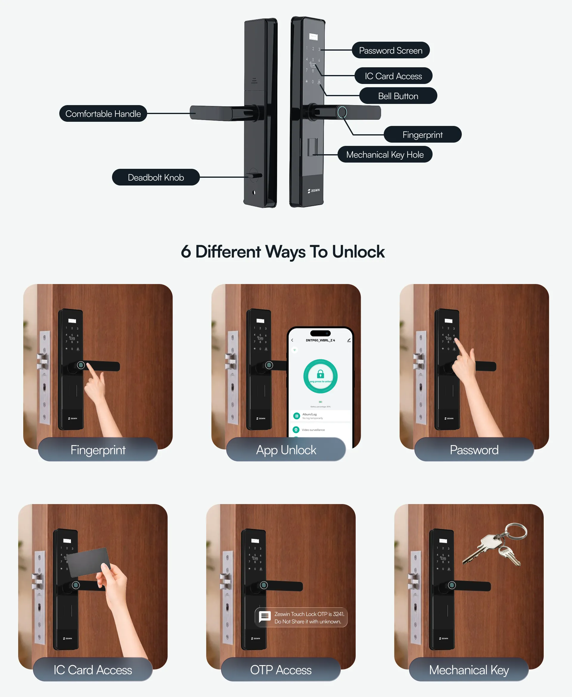• Zeswin Mobile App for access control and unlock history